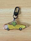 Frog in a Pencil Car - Cute Richard Scarry Inspired Epoxy Acrylic Charm Keychain