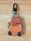 Capybara in a Mandarin Car - Cute Richard Scarry Inspired Epoxy Acrylic Charm Keychain