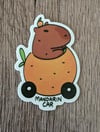 Capybara in a Mandarin Car - Cute Richard Scarry Inspired Vinyl Sticker