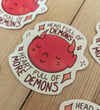 Head Full of Demons, Heart Also Full of Demons - Cute Devil Spooky Vinyl Laminate Sticker
