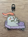 Ghost in a Coffin Car - Cute Spooky Richard Scarry Inspired Epoxy Acrylic Charm Keychain