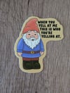 When You Yell at Me This is Who You're Yelling At - Cute Garden Gnome Vinyl Laminate Sticker